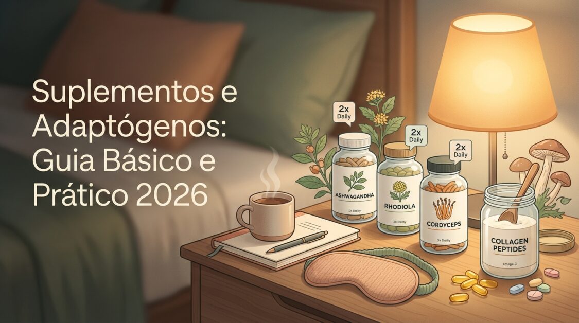 Aqui você encontrará explicações simples sobre adaptógenos, colágeno e vitaminas populares em 2026, o que a evidência científica diz, orientações de dosagem geralmente aceitas, potenciais interações e sugestões práticas para começar com micro-hábitos.